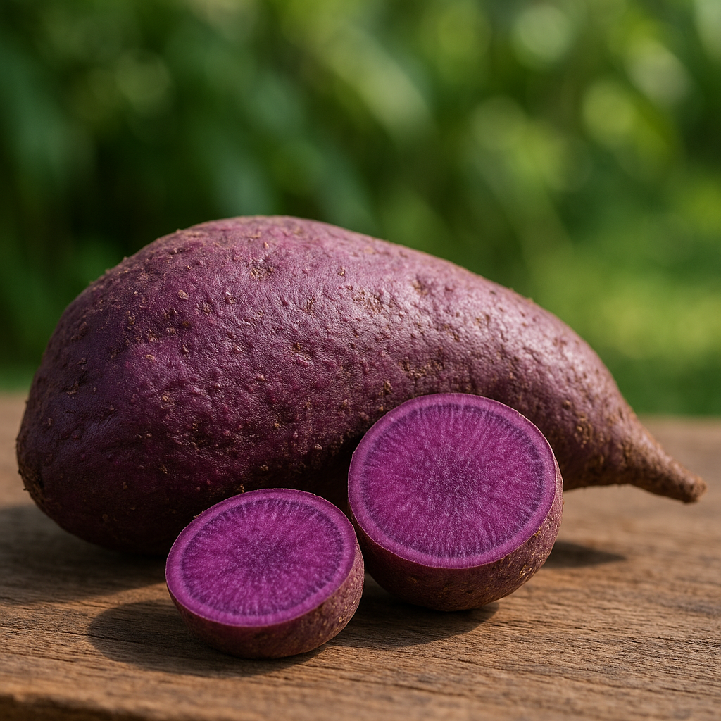 Tubercule originaire des Philippines, connue pour sa couleur intense, sa douceur naturelle et ses vertus antioxydantes.